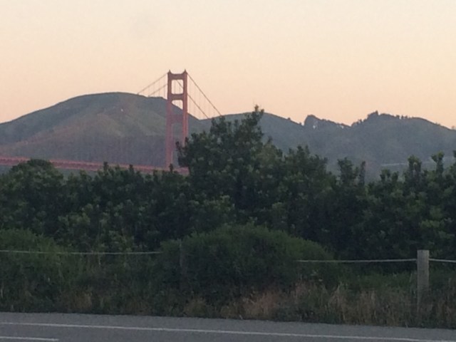 I’m running a race today, The Levi’s Presidio 10, to be precise. It’s benefitting The Guardsman and there’s a 10 mile, 10k, or 5k option route so it draws a diverse group of runners and walkers. Plus the course starts along the water in SF and except for the 5k, takes you across the Golden Gate Bridge. This is the view from my car.