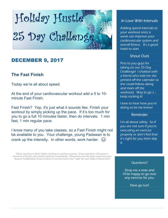 - If you need structure, print out the 25 day calendar and check off the days as you go along.