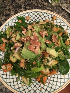 - Now add some fats – but keep it light (avocado – 1/4 or so, a tablespoon or two of nuts, flax or hemp or chia seeds, etc.)