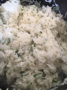 Cook the rice according to directions. When hot, add the cilantro and lime juice and stir.