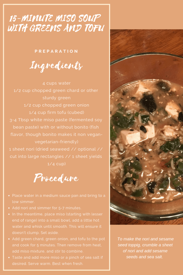 Note – I used 2 sheets of nori instead of 1, added the green onion on top of the soup instead of while cooking and also added Tamari sauce (gf soy sauce) for some extra seasoning.