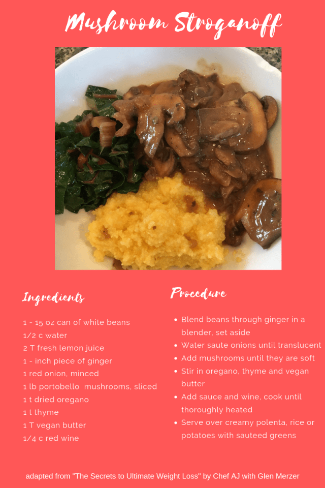 This tasty dish was a hit in my house! The recipe below includes some red wine and vegan butter to add some extra depth and flavor. This is a great recipe to try on a Meatless Monday. With the greens and polenta it’s very filling and satisfying. Click here for a printable version.