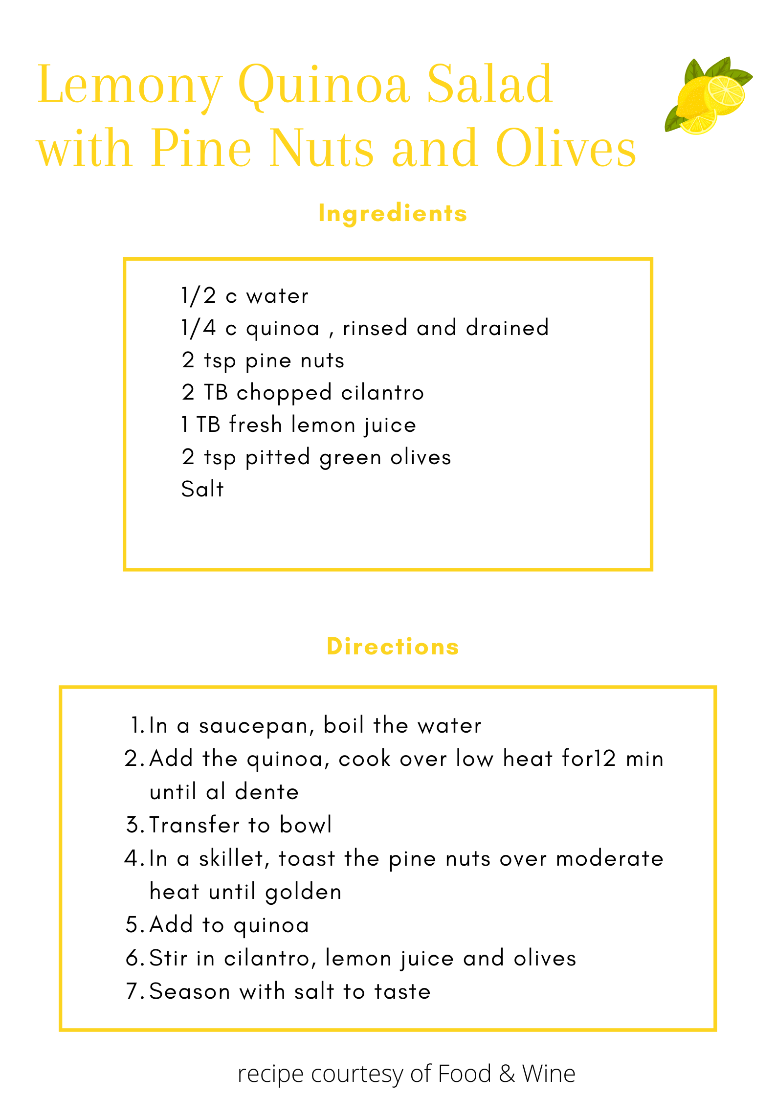 I’m excited to make this dish to take on our upcoming houseboat trip with a few adjustments. Since it will sit in a cooler for a few days, I will store the pinenuts to add right before serving and I’ll turn this from a side to a main dish by adding chickpeas.